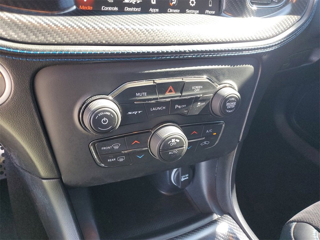 ABS brakes, Alloy wheels, Compass, Electronic Stability Control, Front dual zone A/C, Heated door mirrors, Heated front seats, Heated rear seats, Illuminated entry, Low tire pressure warning, ParkView Rear Back-Up Camera, Passenger door bin, Remote keyless entry, Traction control, 4-Wheel Disc Brakes, 6 Speakers, Air Conditioning, AM/FM radio: SiriusXM, Anti-whiplash front head restraints, Apple CarPlay/Android Auto, Audio memory, Auto-dimming door mirrors, Auto-dimming Rear-View mirror, Automatic temperature control, Brake assist, Bumpers: body-color, Delay-off headlights, Driver door bin, Driver vanity mirror, Dual front impact airbags, Dual front side impact airbags, Emergency communication system: SiriusXM Guardian, Four wheel independent suspension, Front anti-roll bar, Front Bucket Seats, Front Center Armrest, Front reading lights, Fully automatic headlights, Garage door transmitter: HomeLink, Heated steering wheel, Hellcat Logo Laguna Leather Seat, High intensity discharge headlights: Bi-Xenon, Knee airbag, Leather Shift Knob, Memory seat, Occupant sensing airbag, Outside temperature display, Overhead airbag, Overhead console, Panic alarm, Passenger vanity mirror, Power door mirrors, Power driver seat, Power steering, Power windows, Radio data system, Radio: Uconnect 4C w/8.4 Display, Rear anti-roll bar, Rear reading lights, Rear window defroster, Security system, Speed control, Speed-Sensitive Wipers, Split folding rear seat, Spoiler, Sport steering wheel, Steering wheel mounted audio controls, Tachometer, Telescoping steering wheel, Tilt steering wheel, Trip computer, Unspecified Tire Brand, Variably intermittent wipers, Ventilated front seats, and Wheels: 20 x 11 Carbon Black AluminuM.